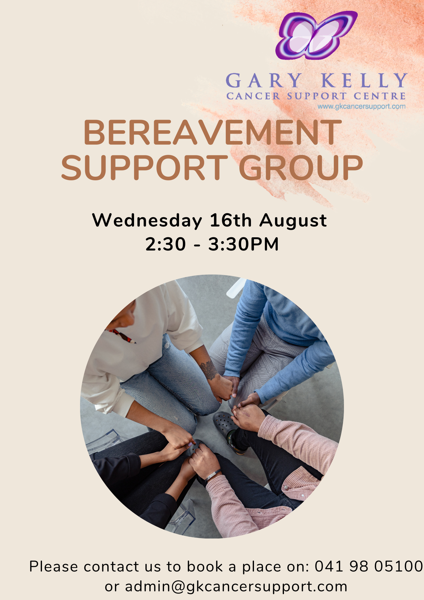 18 October, 2023 @ 2:30 pm - 3:30 pm Bereavement Support Group Gary Kelly Cancer Support Centre George’s St, Drogheda, Louth, Ireland
